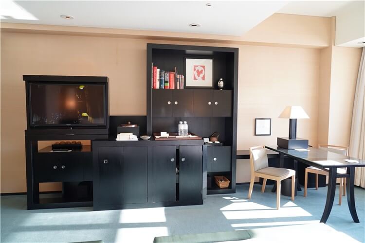 このテレビ周り、ミニバー周りのインテリア自体が完璧なミニマムスタイルとなっており、これぞパークハイアット東京の醍醐味だなぁと思います。