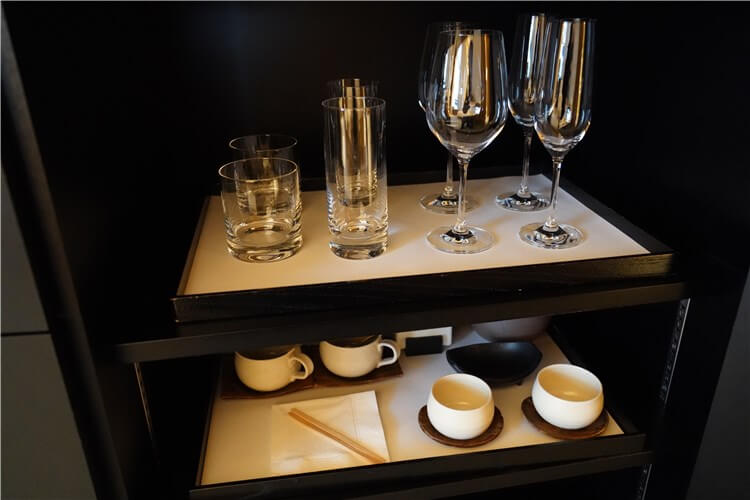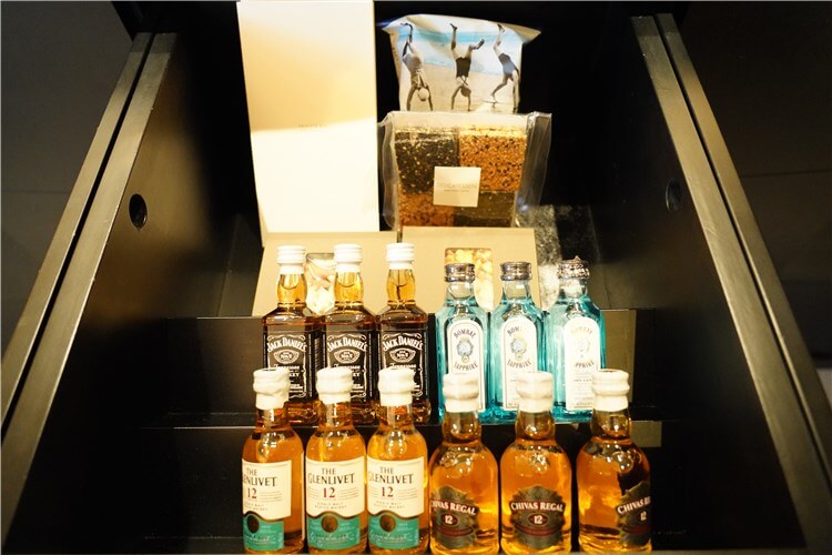 ルームドアを開けた右手側にベッドルームがあるのですが、その手前にミニバー類がまとめてあります。
