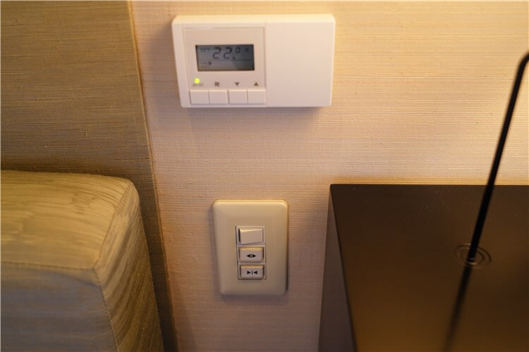 そしてその下の電源ですが、マスターの照明を切るボタン、そしてカーテンの自動開閉が出来るようになっています!!