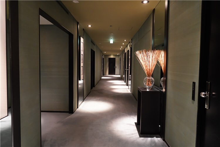 エレベーターを降りるとブラックとグリーンを基調にした空間が広がっています。
