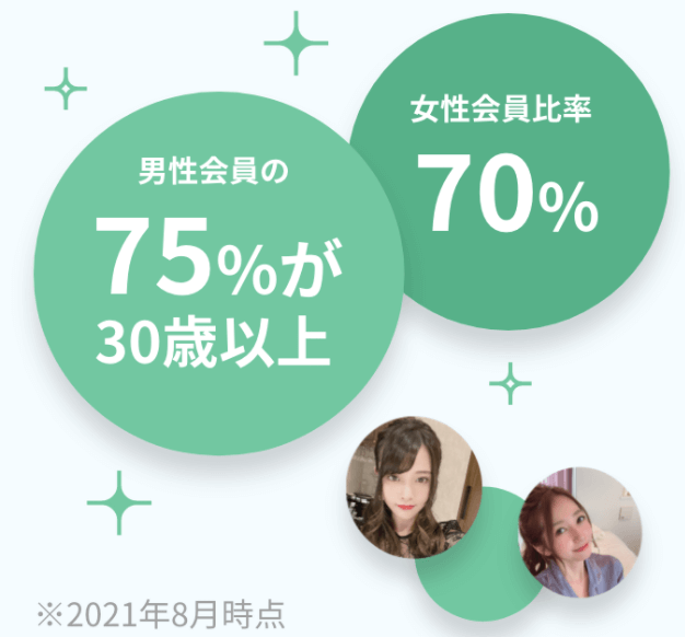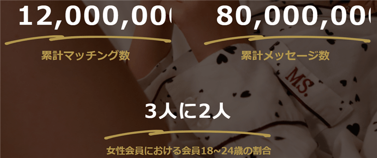 そのような理由もあって、女性会員比率は驚愕の70%の有料マッチングアプリとなっています。