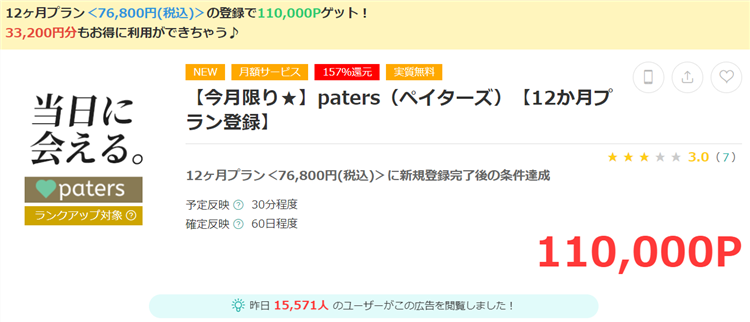 爆益継続!美女と出会って33,200円貰う超絶裏ワザ!4秒1組マッチングのペイターズ有料会員76,800円分無料!!