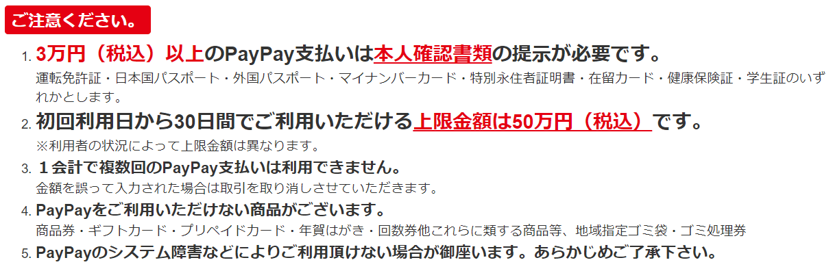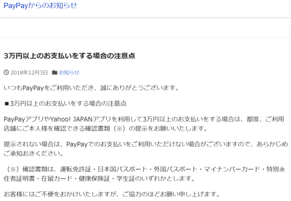 PayPay(ペイペイ)の注意点!3万円以上利用は本人確認あり!!