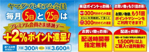 ヤマダプレミアム会員限定で5日、25日が更に2%アップ!