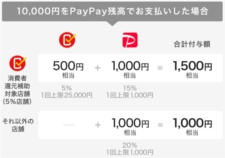 対象外店舗と同じ還元率なのですが、消費者還元補助とPayPayからの還元の2つがあり、PayPay側の還元率で調整をしている感じですね!!