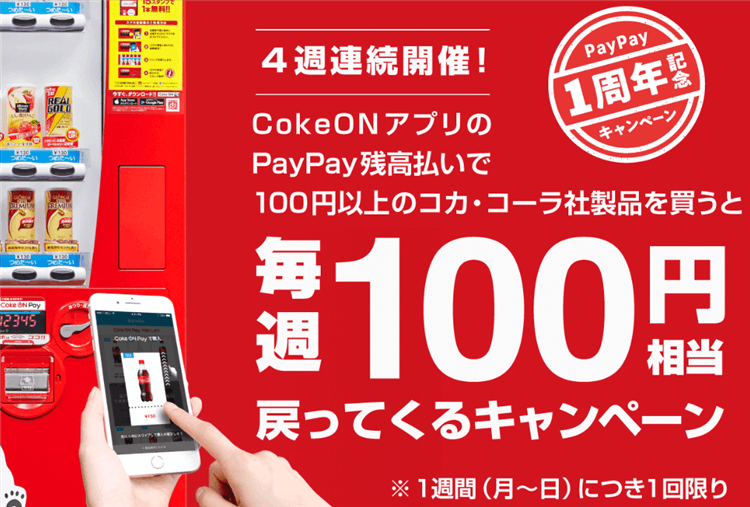 - Coke ONアプリとPayPayアプリの両方が必要となります。