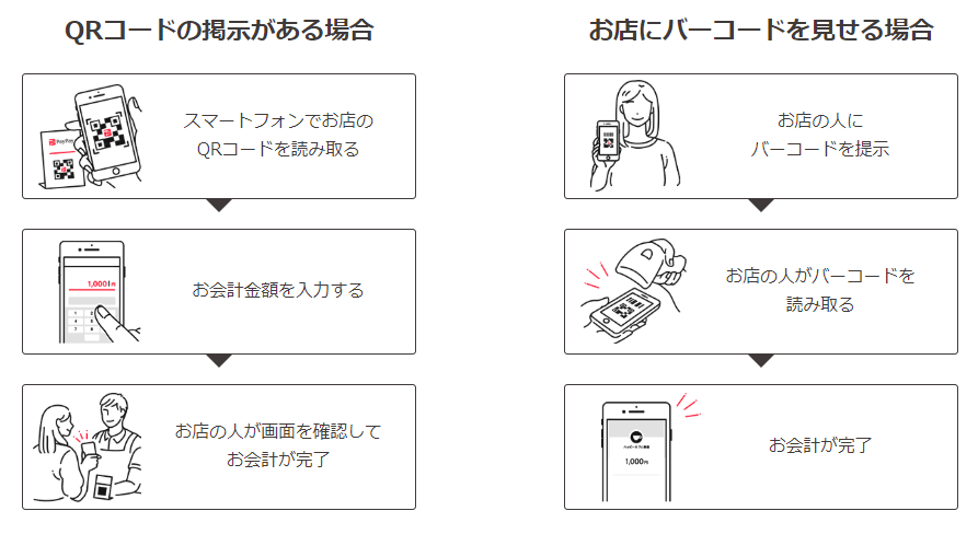 「PayPay(ペイペイ)」の支払い方法は3つあります。