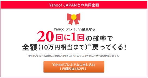 そこでおすすめなのが、ヤフープレミアム会員になって「20回に1回全額バック」の対象者になっておくことです。