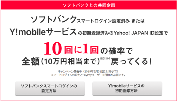 「10回に1回の全額バック」キャンペーンは実はソフトバンク、ワイモバイルユーザーだけが対象です。