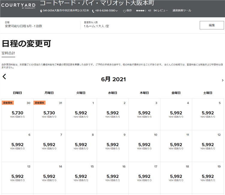 コートヤード・バイ・マリオット大阪本町はアンダー6,000円!!
