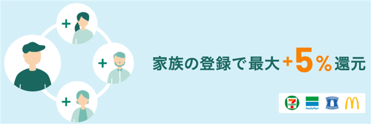 こちらは家族がいる方が対象なのですが、家族の登録をすることで最大+5%還元を受けることが出来るようになっています。