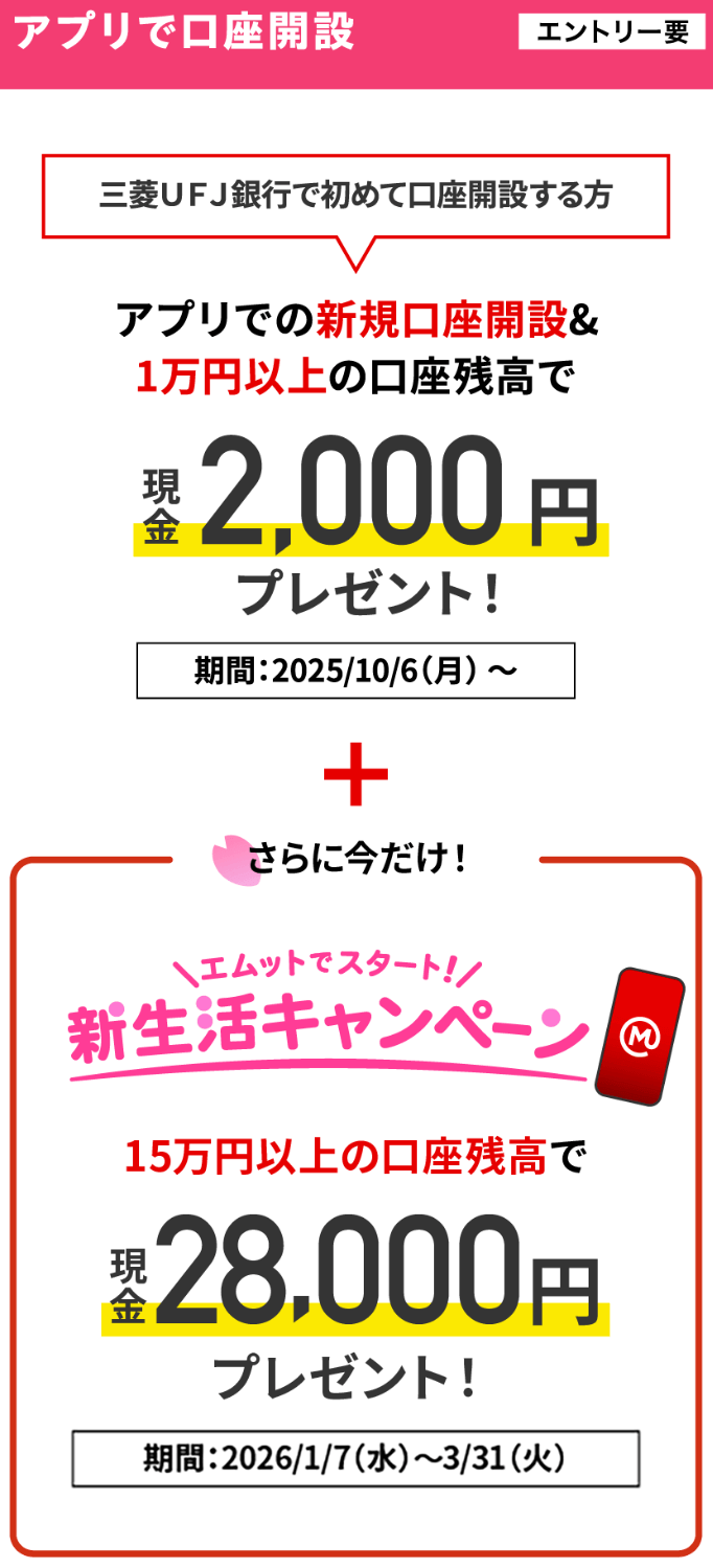 更に三菱UFJ銀行側のキャンペーンで最大30,000円が貰えちゃいます!!