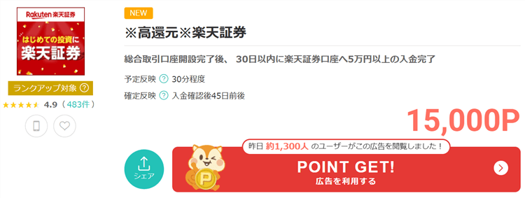 最新のキャンペーンにつきましては、広告主様の公式サイトよりご確認ください。※ モッピーポイントについて、広告主へ直接問い合わせする事を固く禁じます。問い合わせた場合、いかなる理由があろうとポイント付与対象外となりますのでご了承ください。