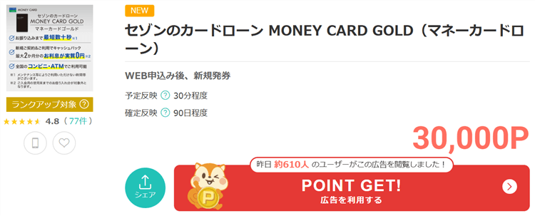 セゾンのカードローン MONEY CARD GOLD(マネーカードローン)が新規発行30,000Pで激アツ!