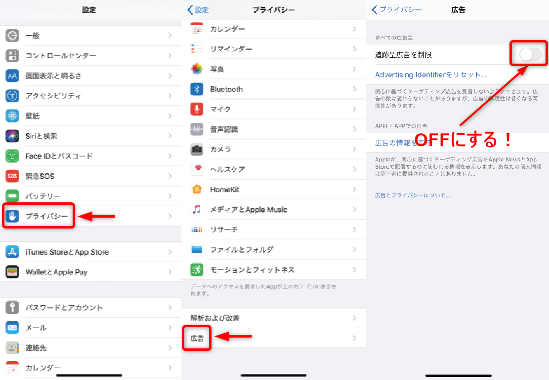 iPhone本体の設定で「追跡型広告を制限」をオフにしておこう!