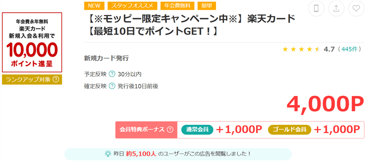 下は日本最大級の大人気ポイントサイト「モッピー」になります。
