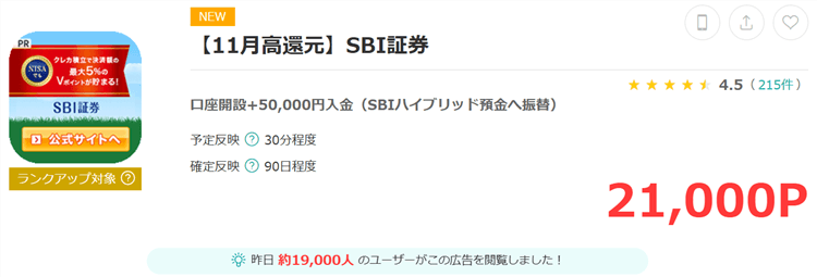 | 4.SBI証券(5万円の入金条件アリ) | 21,000P |