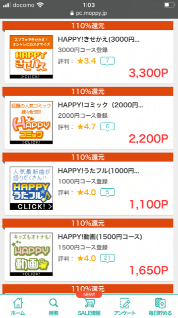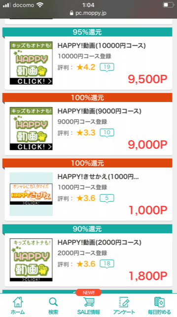 モッピーのHAPPY!動画シリーズが激アツ!全部サクッと利用して18,250ポイント!!