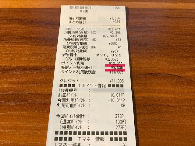 そしてその下に「感謝デー特別値引」という項目で5,006円分値引になっていますね?