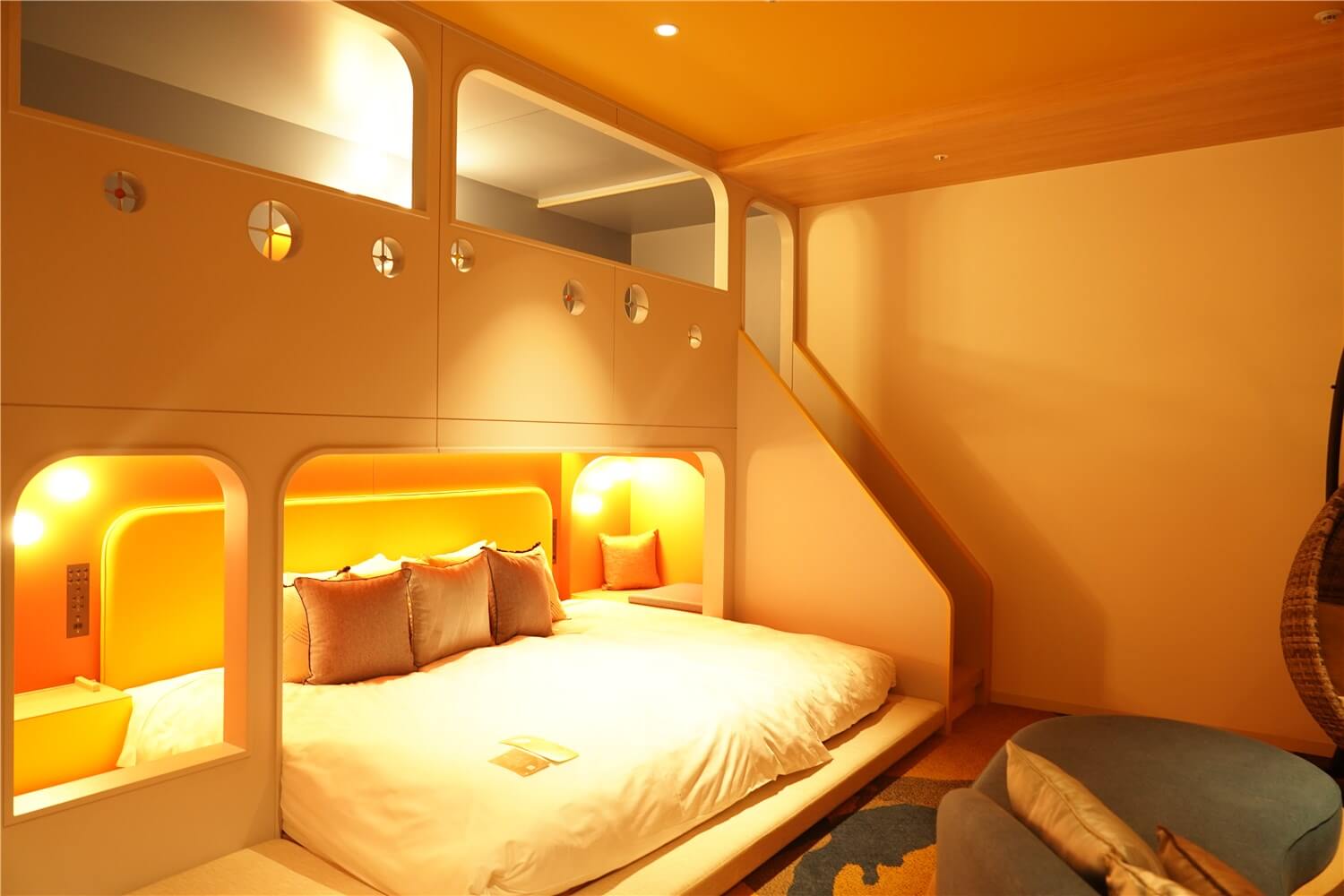 ファミリールーム最大の魅力はこの秘密基地のようなロフトベッド!
