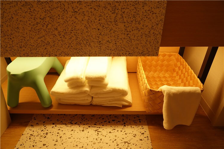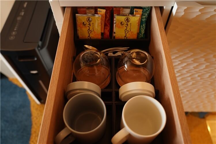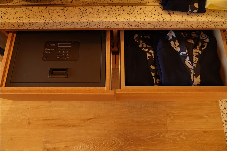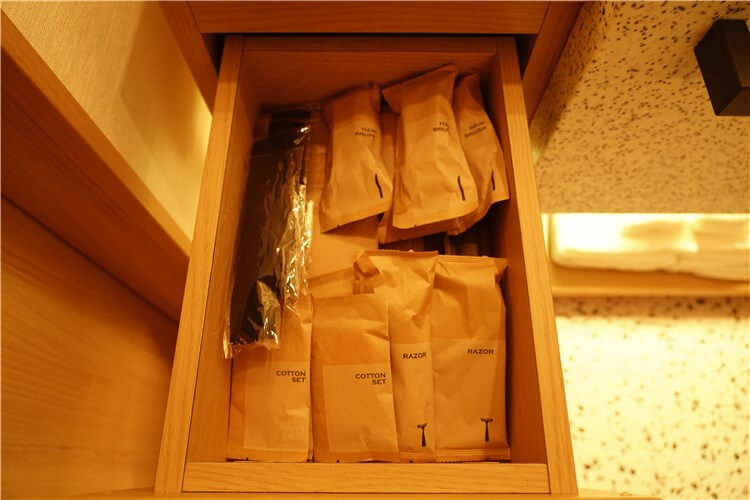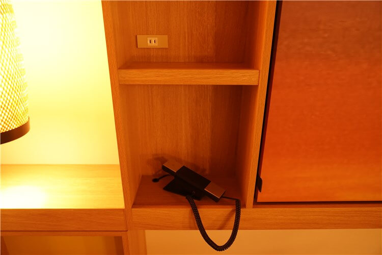 通常のホテルだと大きなチェストなどがあるのですが、こちらはすべて壁にセットされたタイプとなっていました。