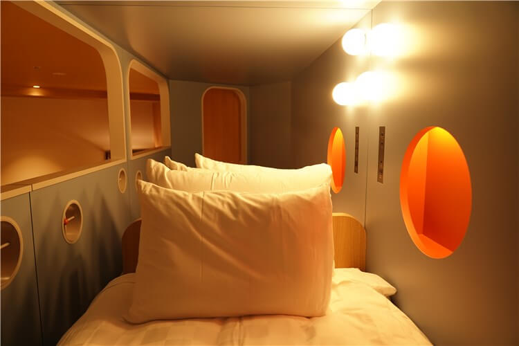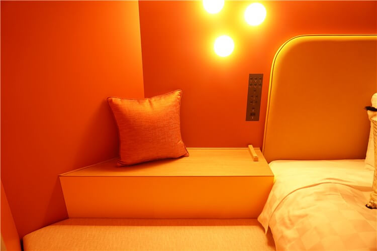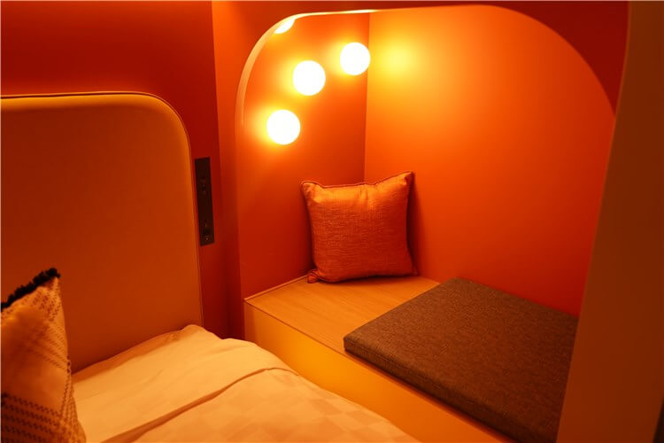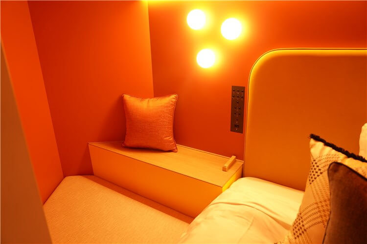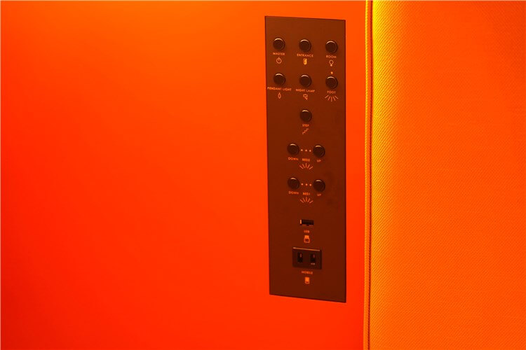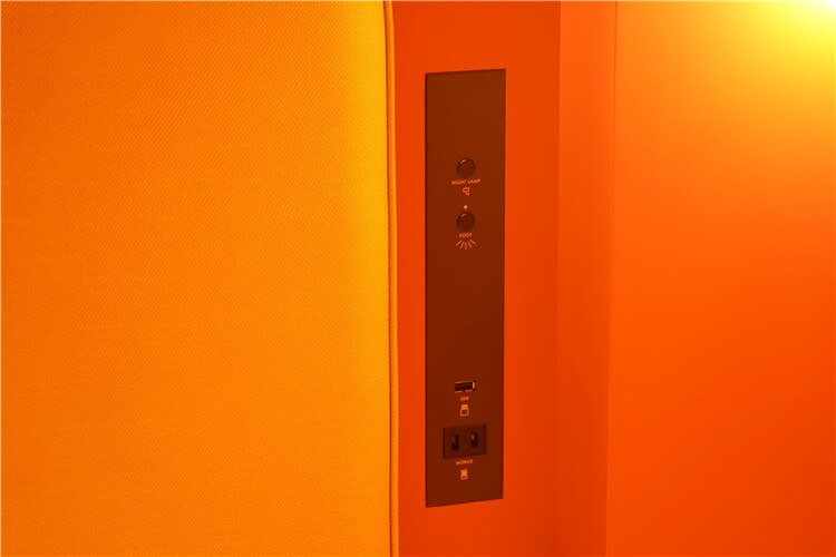ベッドと小部屋の間には照明のスイッチがあり、更にコンセント、USBも利用が出来る神仕様となっていました!