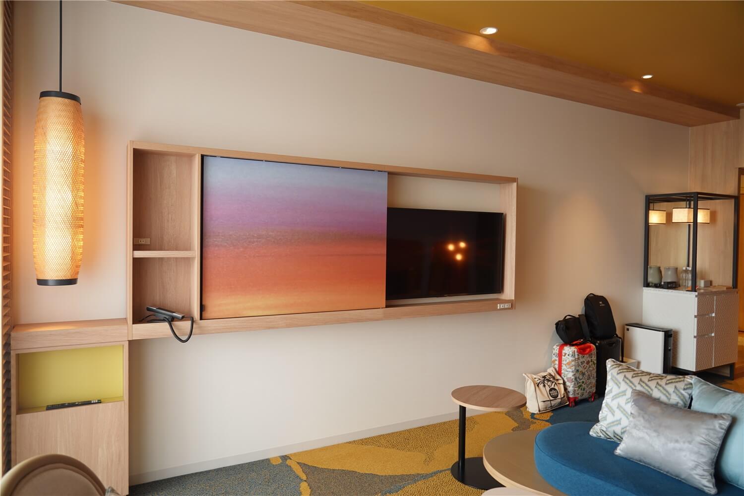 テレビは引き戸が付いており、テレビ自体を隠すこともできるようになっています。
