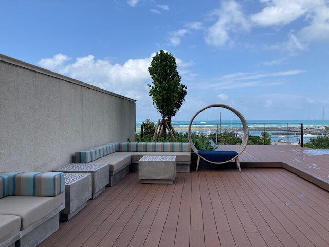沖縄プリンスぎのわんは目の前すぐにビーチという状況ではないのですが、このような感じで海を楽しめるようになっているので、景色も最高のロケーションとなっていました!