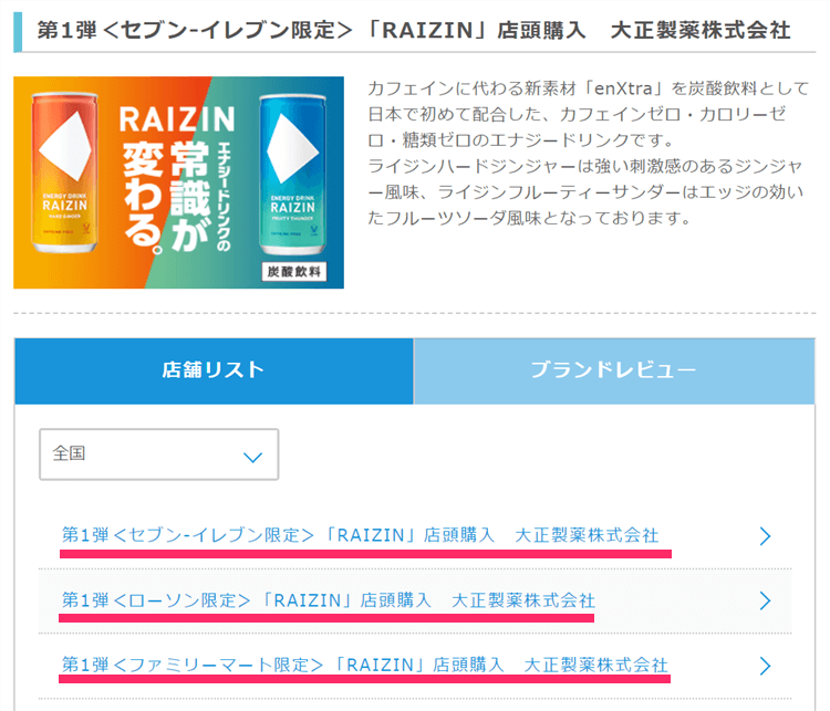 対象店舗も前回と変わらず、ローソン、ファミリーマート、セブンイレブンの3店舗が対象となります。