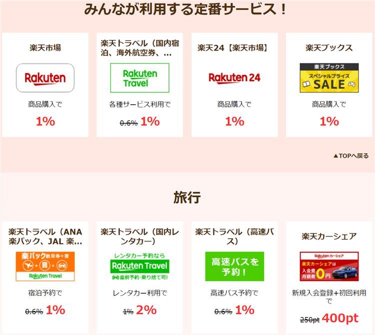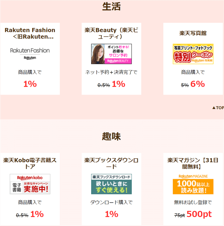 また楽天ファッション、楽天ビューティなどなどその他のサービスでも基本的に1%~以上のポイントが貯まるようになりますよ!!