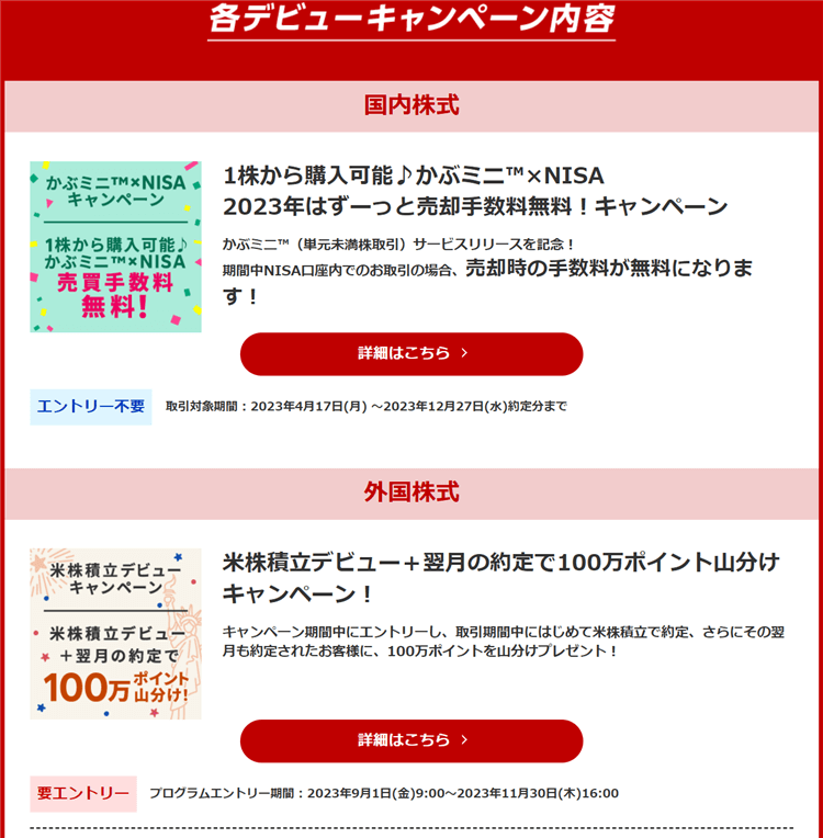 今非常に人気が高いNISA口座ももちろん開設出来ますし、子供用NISAも扱っています。