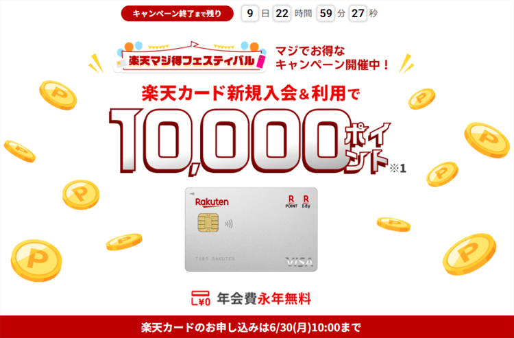 - 楽天カードのキャンペーンで最大10,000楽天ポイント貰える!