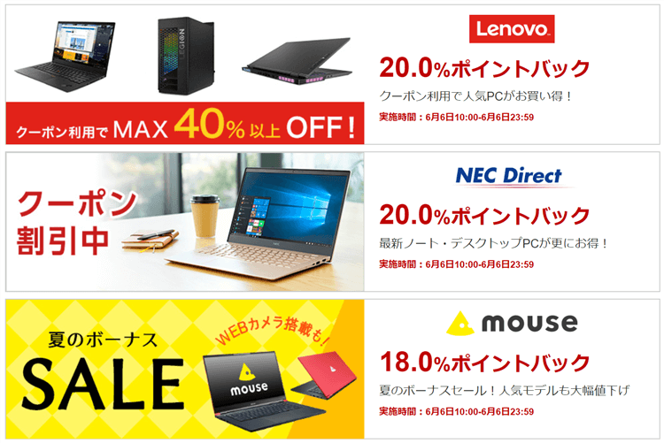 - NEC Direct:20%ポイントバック