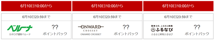 現状以下のスケジュールにて期間限定ポイントバック率をさらにアップします!
