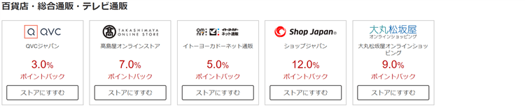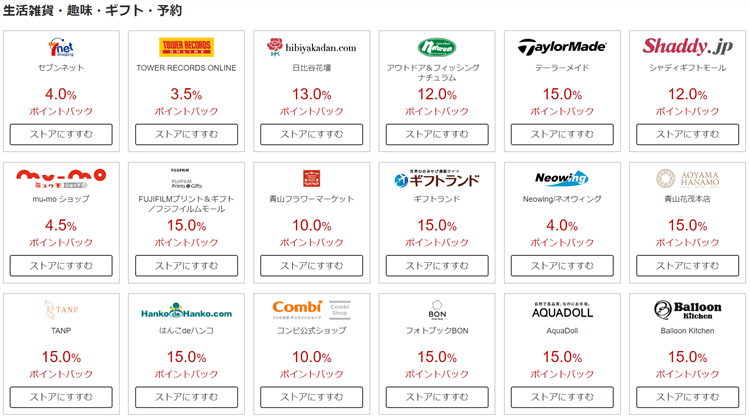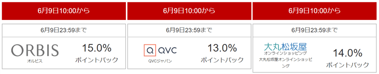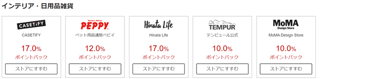 早速期間限定ポイントアップのショップの一覧を紹介したいと思います!