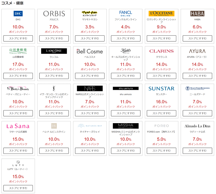 - ランコム:11%ポイントバック