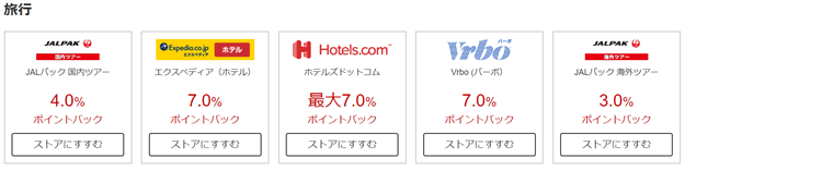 - JALパック国内ツアー:4%ポイントバック