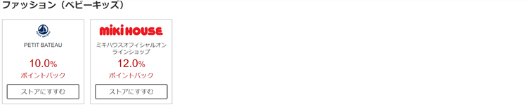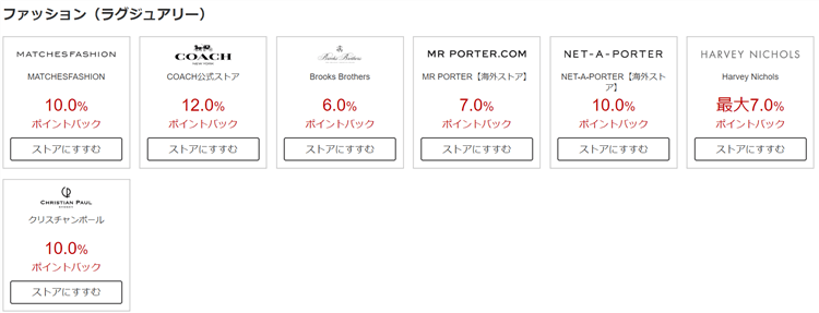 「ポイントバックの利率を確認して、ストアに進むのボタンを押す」