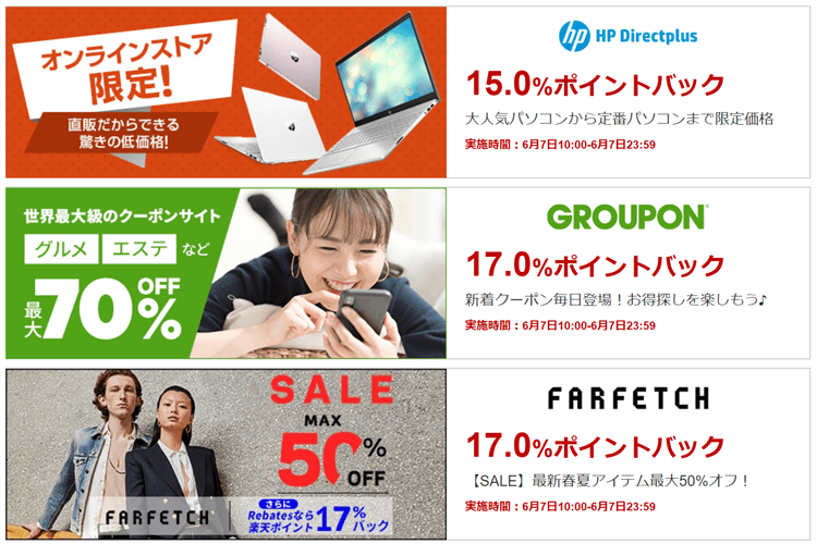 - HP公式オンラインショップ:9%ポイントバック