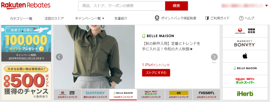 楽天Rebatesが提携しているストアは、有名ストアも含んで400点以上!