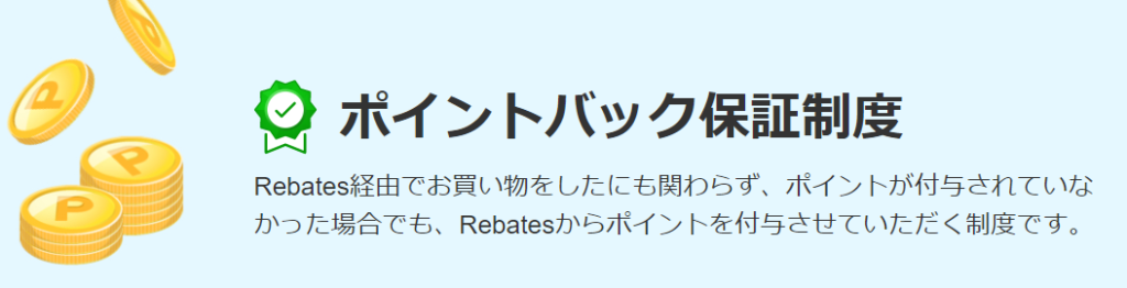 楽天Rebatesのさらにすごいところは、ポイントバック保証制度を掲げているところです。