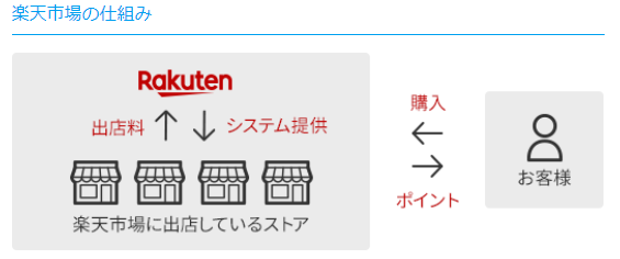 楽天市場内では、ストアに対してシステム提供する代わりにもらう出店料の一部をポイントとしてユーザーに還元するシステムとなっています。