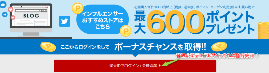 今使っている楽天IDで登録すれば600ptをゲットできるチャンスです!