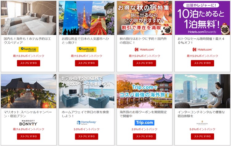 特にすでに破格の値段である格安ホテル予約サイトや格安航空券販売のサイトでも、ポイント対象になるのはすごいですね。