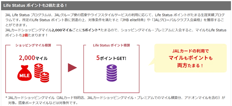 また新しく生まれ変わったJALのプログラムの1つである「Life Statusポイント」も2倍貯まるようになるわけです。