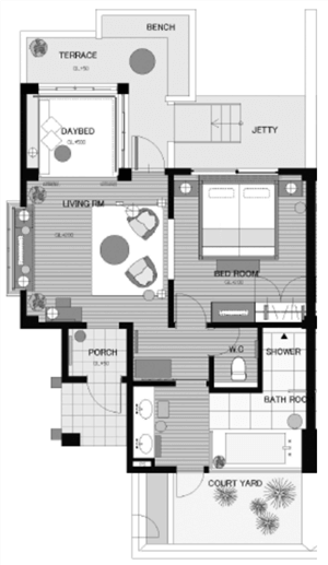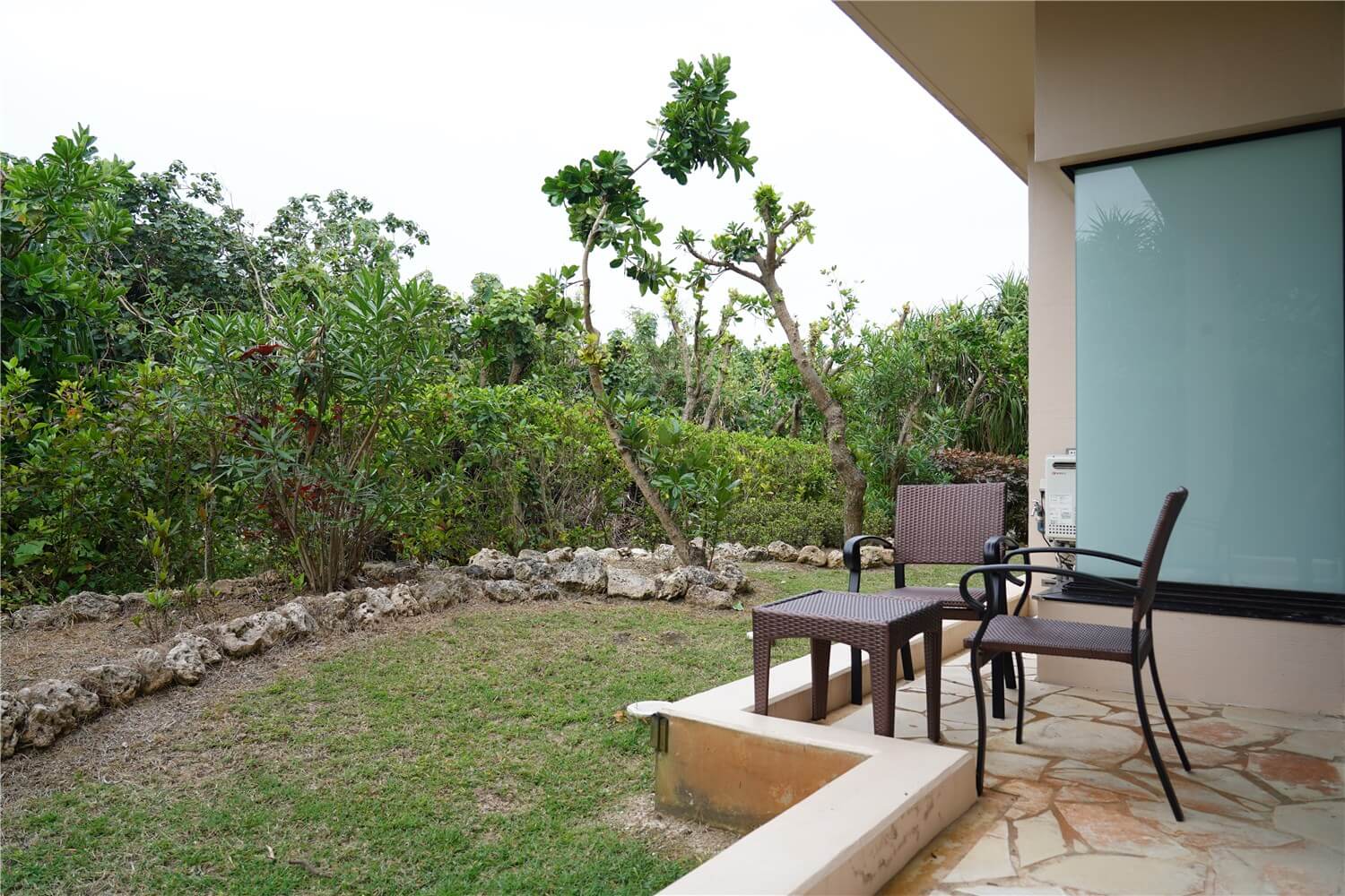 こちらのヴィラですが2階建てとなっており、1階のルームであれば庭付きのベランダがあります。