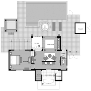 ロイヤルスイート![]() | ベッド×2(110×200cm・ハリウッドツイン) デイベッド×1(230×250cm) テラス チェア テーブル 液晶テレビ ガゼボ バスルーム(シャワーブース・サウナ付) 屋外ジェットバス プライベートプール 洗浄機付トイレ 洗面台 冷蔵庫 客室アメニティ 面積 95m² 収容人数 最大4名 禁煙(加熱型タバコ、電子タバコ類を含む)、WiFi可 土足厳禁 定員4名時は、正ベッド2台(2名)とデイベッド1台(2名) |