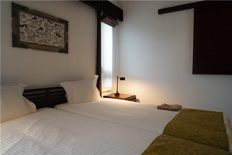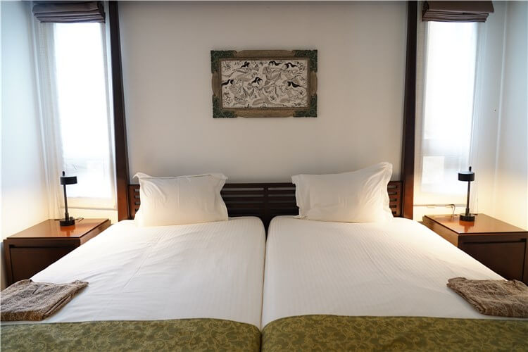 こちらはツインタイプとなっておりベッドがルームのほとんど占めている為、少し狭く感じるかもしれません。