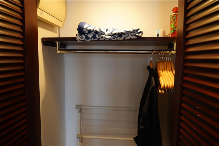 クローゼット内には寒い時のブランケットや、プールあとに干せる物干しキットがありました。