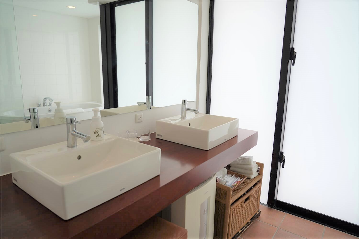 スーペリアスイート![]() | ベッド×2(110×200cm・ハリウッドツイン) デイベッド×1(200×205cm) テラス チェア テーブル 液晶テレビ バスルーム(シャワーブース付) 洗浄機付トイレ 洗面台 冷蔵庫 客室アメニティ 面積 53m² 収容人数 最大4名 禁煙(加熱型タバコ、電子タバコ類を含む)、WiFi可 土足厳禁 ※定員4名時は、正ベッド2台(2名)とデイベッド1台(2名) |